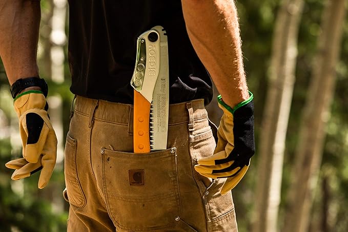 - PORTABLE FOLDING HANDSAW: This professional handsaw combines superior performance and ergonomics with high-quality design. The double-fist rubber handle is easy to grip, and the blade itself can be folded down. Store the handsaw in your pocket, glove compartment, toolbox, or storage case easily.