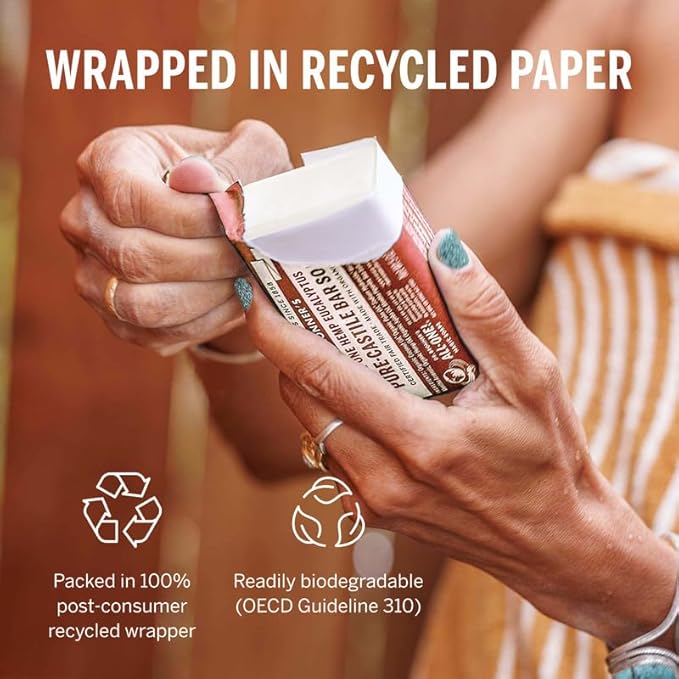 - PACKAGED IN POST-CONSUMER RECYCLED WRAPPERS: Every Pure-astile Soap bar is wrapped in recycled paper, helping reduce landfill waste. Our packaging supports a circular economy and cleaner planet