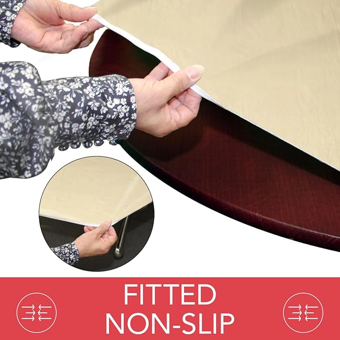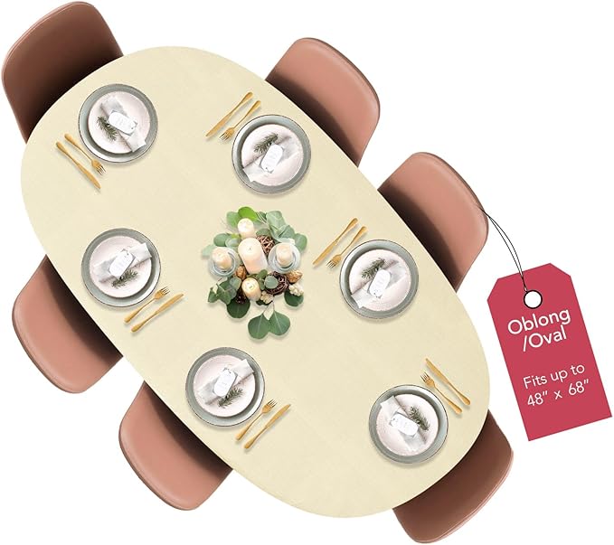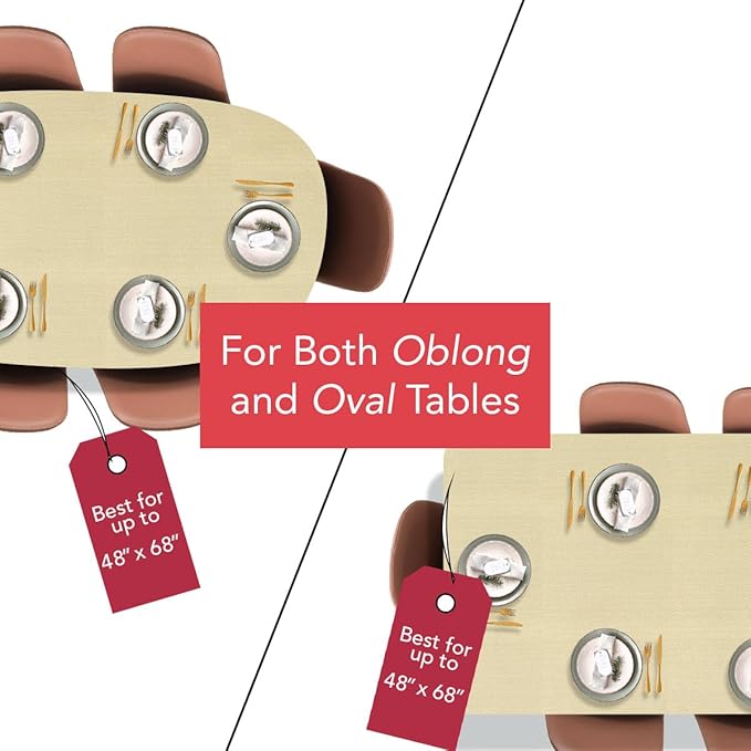 - PERFECT FIT - Our elastic edge design is made to be a snug fit for ANY oblong/oval table up to 48 W x 68 L.