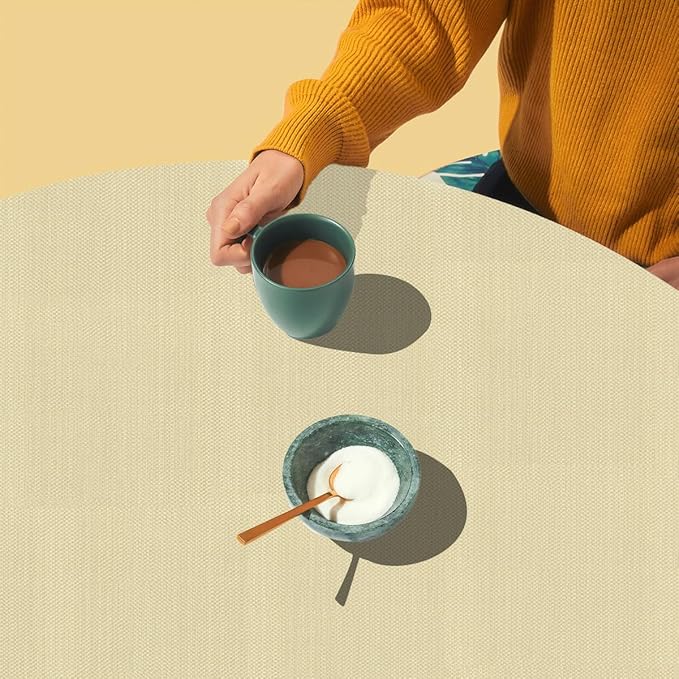 LAMINET Elastic Fitted Table Cover - Basketweave (Beige) - Oblong/Oval - Fits Tables up to 48 x 68”