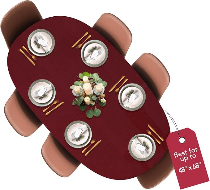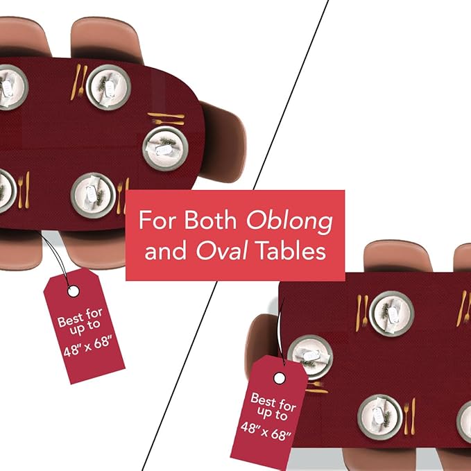 - PERFECT FIT - Our elastic edge design is made to be a snug fit for ANY oblong/oval table up to 48 W x 68 L.