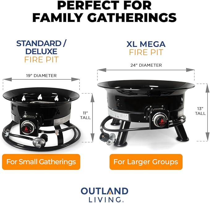 - Signature outland living quality: Durable high quality steel construction with protective enamel finish for dependable longevity; Superior stainless steel burner and fasteners. Outland Living has outdoor living perfected so you can create the perfect ambiance to share stories and good times. Make new memories with family and friends, in comfort and style anywhere outdoors, with the outland firebowl deluxe propane fire pit. Ignition type: Manual