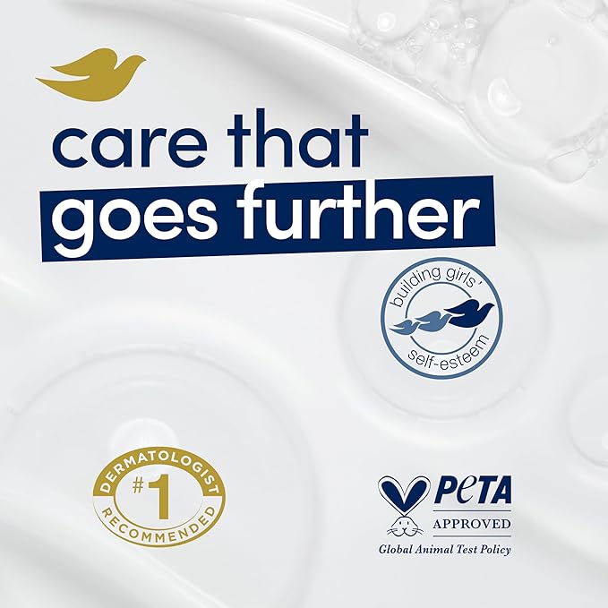 - CARE WITH YOUR CLEANSER: Globally, Dove does not test on animals and is PETA Approved. Our mission is to help the next generation of women develop a positive relationship with the way they look.