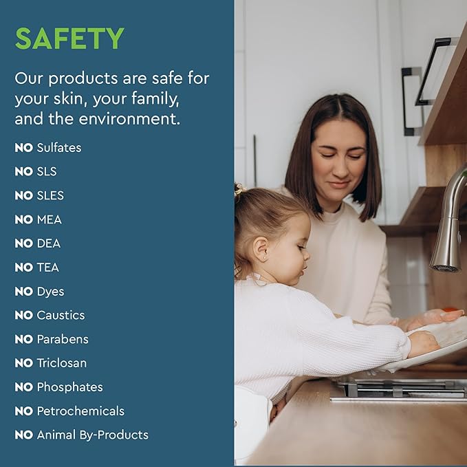 - No Skin Damaging Chemicals: No sulfates (SLS, SLES, SCS), triclosan, parabens, petrochemicals, animal by-products, perfumes, or caustic ingredients that dry out and irritate your skin
