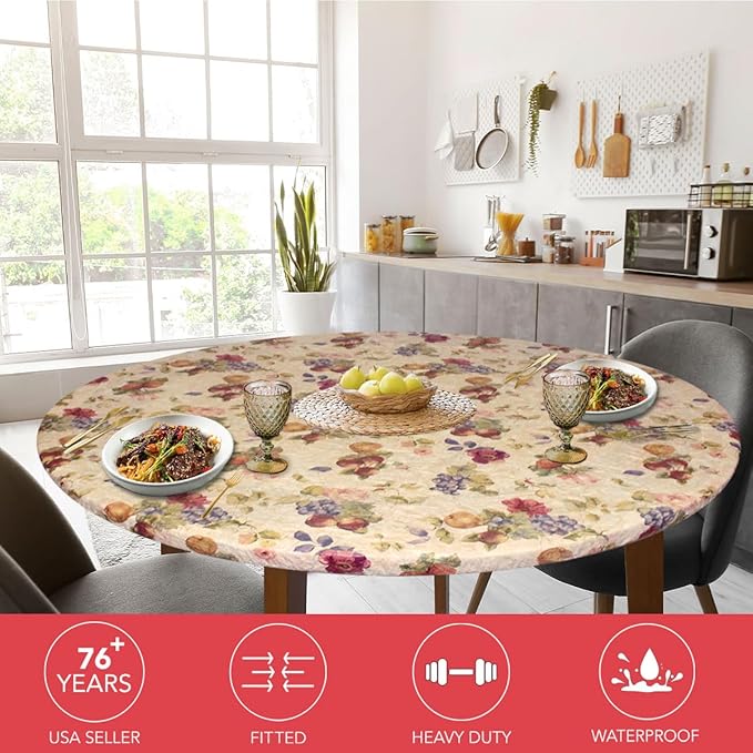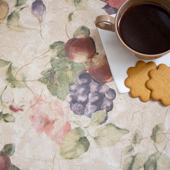 LAMINET Elastic Fitted Table Cover - Antique Fruit - Large Round - Fits Tables up to 45-56” Diameter