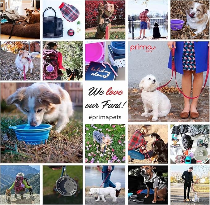 Prima Pet Collapsible Silicone Food and Water Travel Bowl with Clip for Dog and Cat, Small (1.5 Cups)