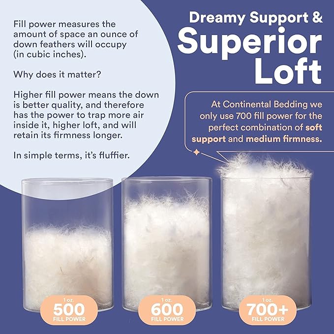 Continental Bedding Luxury Down Pillows King Size Pack of 1 - Family Made in New York - Cool Breathable Bed Pillows for Sleeping, Back, Side, Stomach Sleepers – 700 FP, Medium