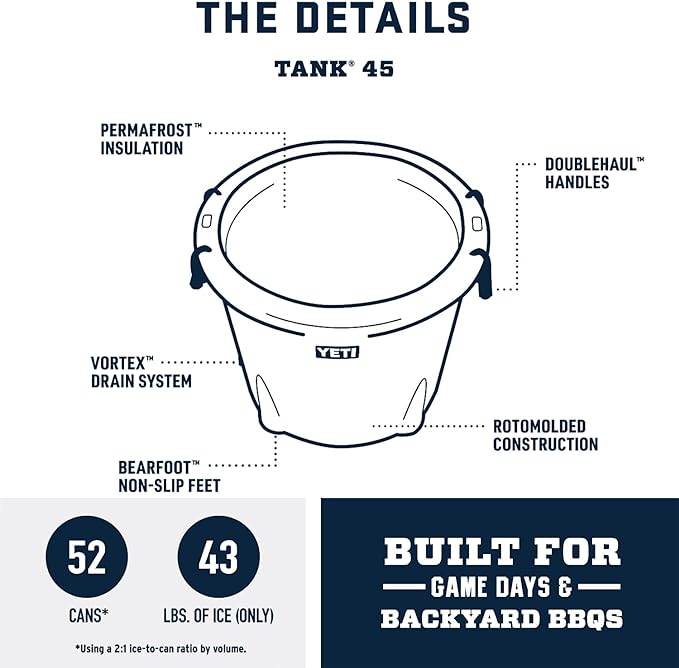 - The YETI TANK 45 is ready for cookouts, championship tailgates, family get-togethers, and more