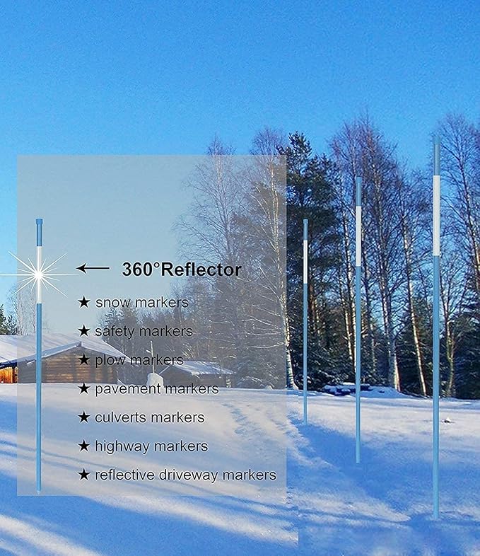 72inch Reflective Driveway Markers 50pack, 5/16'' Diameter Pavement Snowmarkers (5/16'' Dia*6ft)