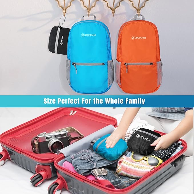 - GET THE AWARD-WINNING ZOMAKE ULTRA LIGHTWEIGHT FOLDABLE BACKPACK: With the light performance and high quality of our ZOMAKE ultra lightweight backpack,we have provided high-quality services to 500,000 people in the world and received praise from many people.I believe that our light foldable backpack will be the perfect partner in your life.You can accompany you on foot,vacation,shopping,cycling,and exercise!