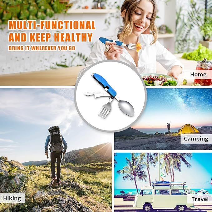 - 4-ππ-1 πππππππ πππππππ ππ ππππ ππππππ: Looking for a light, compact but fully portable camping utensils? You just found it! Equipped with a detachable fork, spoon, knife and bottle opener set, our camping cutlery set is easy to store in your pocket or pack so youβll always be prepared - the perfect companion on the go.