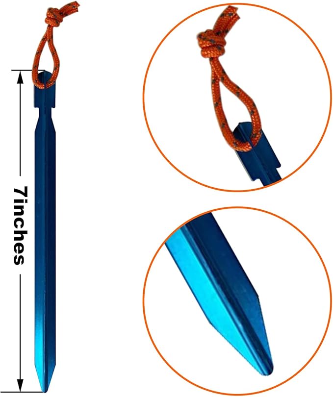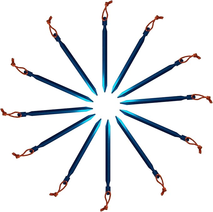 - Ultra Light: An ultra-light, three-sided, high-strength 7075 aluminum tent stakes that securely anchors your tent without adding unnecessary weight to your pack, you won't even feel these camping essentials in your pack. Tent stakes lightweight are easy to carry with you