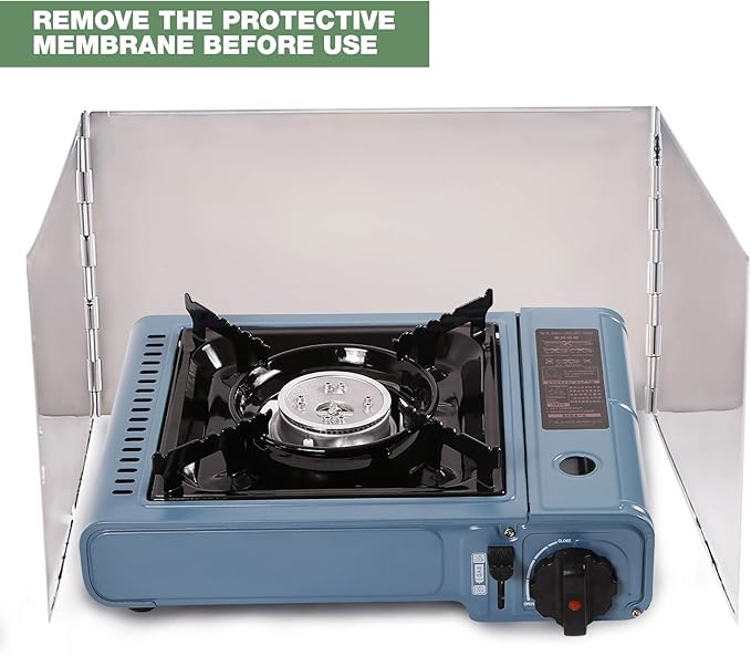 - Functional: Camping stove windshields can provide great wind protection around the stove, perfect for butane stove. Help keep your camping stove away from the effects of wind, increase efficiency in cooking food. You can also use it to help you start a fire in windy conditions