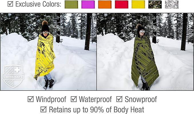 - BONUS SPACE BLANKET INCLUDED: With every purchase, receive a bonus space blanket - a smaller, more compact version of our emergency Mylar thermal blankets. This bonus blanket is perfect for keeping in your glove compartment, hiking backpack, or emergency go-bag. It offers the same heat retention and waterproof benefits in a more compact size, ensuring you're prepared for anything, anywhere, anytime.