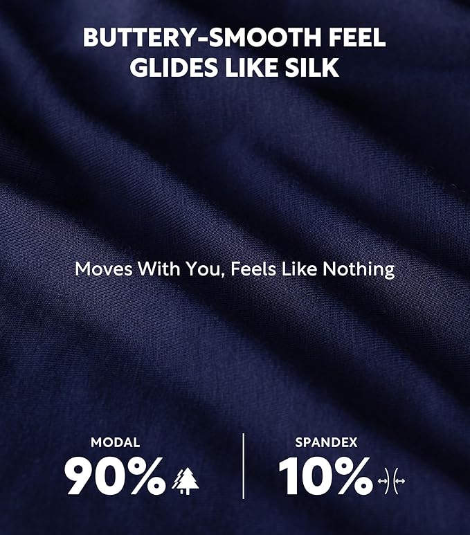 - FEELS LIKE SECOND SKIN: Luxurious Modal fabric is a natural material derived from responsibly sourced wood-based fibers. Softer than cotton, cool against the skin, silky to the touch, lightweight, durable, and exceptionally comfortable. Perfect for everyday mens underwear.