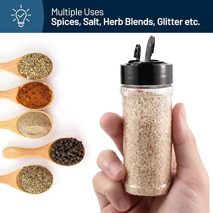 - Multi-Purpose: Our clear plastic jars are perfect for storing dried spices, salt, peppers, seasonings, herb blends, powder, glitter, bath salts, crafts, etc.
