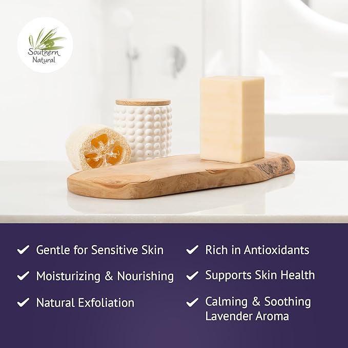 Southern Natural Goat Milk Soap Bar (Lavender 3 Pack) For Dry Sensitive Skin. Natural, Handmade Soap For Men, Women, Kids & Baby. Use On Face & Body