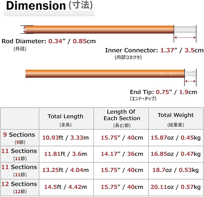 - π EASY ASSEMBLY: High quality elastic cord design inside, just connect each part for easy assembly. Each pole segment is carefully treated for a smooth connection between the pole sections for quick setup / takedown in seconds. Easy to use and non-slip