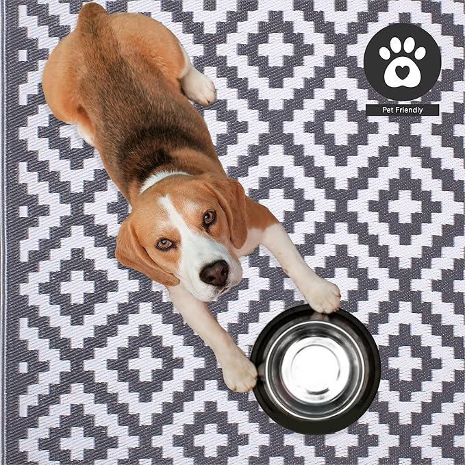 - Outdoor patio rug - 100% recycled plastic tubes are tightly woven to create an outdoor rug perfect to use as on your patio, deck, camping, and RVs. Safe to use with pets and kids as a playroom rug