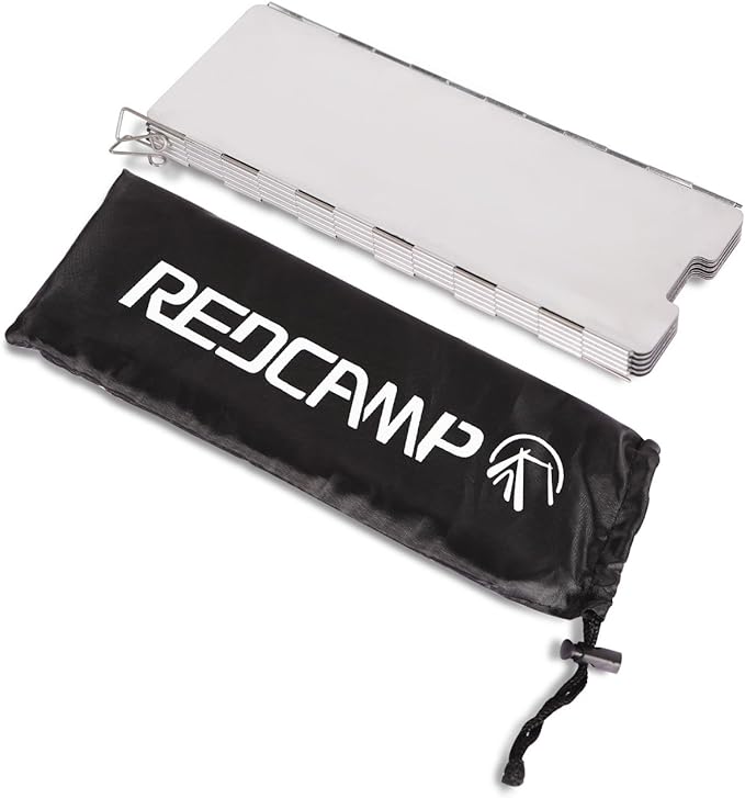 - LIGHTWEIGT & COMPACT: REDCAMP aluminum windscreen has a drawstring bag for convenient storage so that it take up little space. Packing weight of the foldable stove windshield: 0.61lbs (0.28kg).