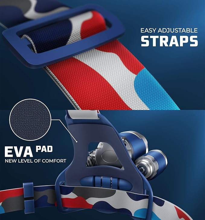 - CUSTOM MADE COMFORT – This head lamp isn’t just tough, it’s also designed for maximum comfort. Enjoy temperature control, thanks to the sweat-resistant headband. Its adjustable sizing makes it a custom made head light for your head.