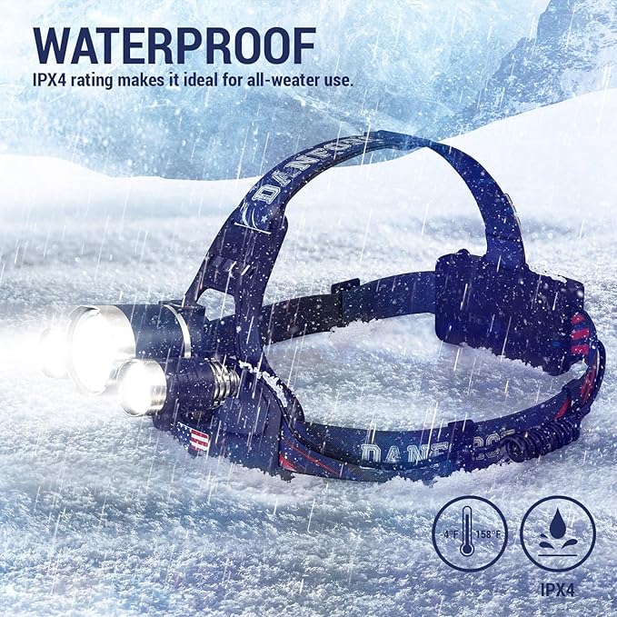 - ALL-WEATHER READY – DanForce head lamps are built to withstand all work and weather conditions, from extreme heat to bone-chilling cold. Plus, the air-tight rubber sealing protects the LED headlamp rechargeable battery from dust, ice, and water, for ultimate dependability.