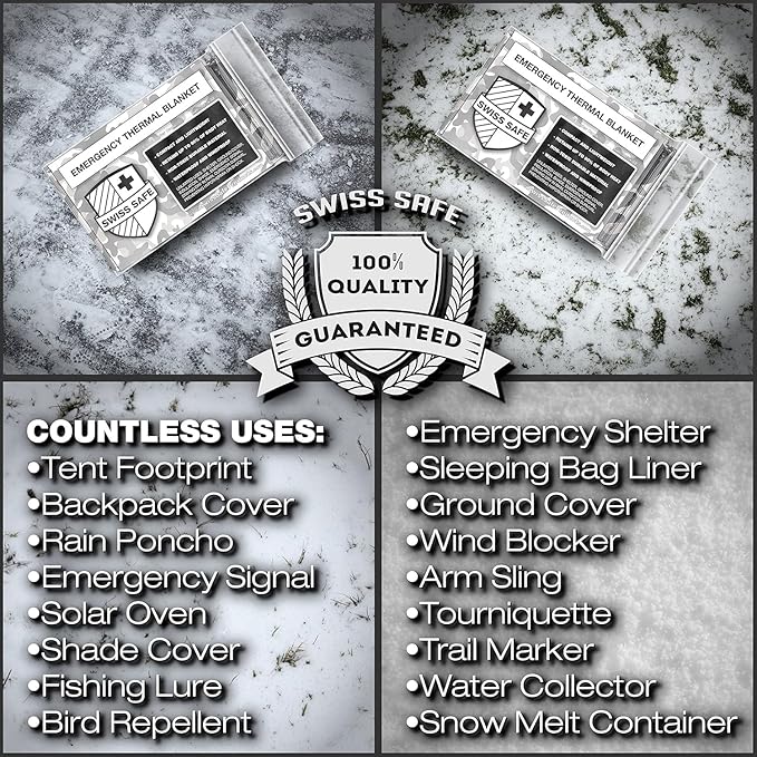 - EFFECTIVELY REFLECTS & RETAINS HEAT: Engineered with advanced dual-sided aluminized Mylar technology, these thermal blankets are designed to maximize heat retention and reflection to retain 90% of your body heat, completely blocking rain, snow, moisture. Perfect for any emergency situation and ideal for NASA-inspired survival gear, outdoor camping, or as a crucial part of your first aid car kit, ensuring you stay warm when it matters most