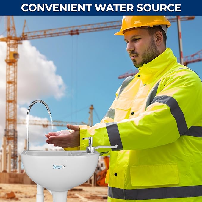 SereneLife Portable Camping Sink with 19L (5+ Gallon) Water Tank, Hands-Free Foot Pump, Soap Dispenser & Towel Holder, Compact Design with Carry Handle – Perfect for Camping, Worksites, Outdoors