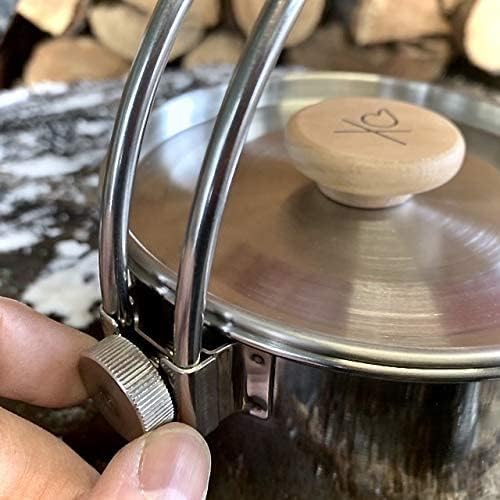 - Traditional Hanger & Hardwood Lid Handle - The Kessel camp kettle pot features a new lockdown hanger handle designed to fold down for secure and easy storage. The lid handle, made from premium 100% hardwood, provides a natural textured grip. Warning: it gets hot during use.