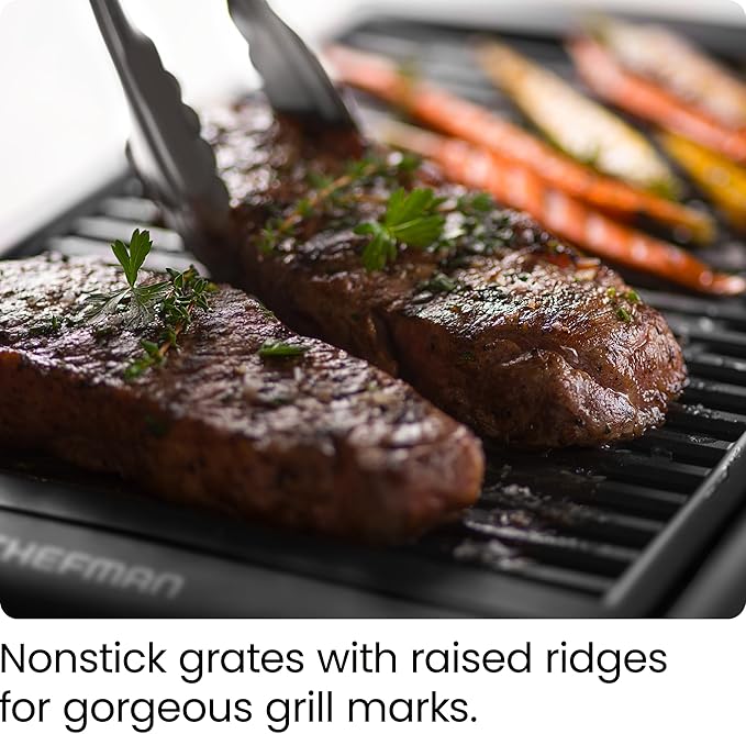Chefman Electric Smokeless Indoor Grill w/ Non-Stick Cooking Surface & Adjustable Temperature Knob from Warm to Sear for Customized BBQing, Dishwasher Safe Removable Water Tray, Black