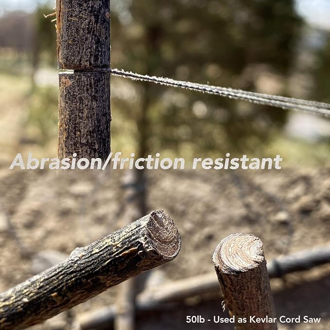 - Reliable Survival Cord in the wild! Highly abrasion/friction resistant, Kevlar cord is used as highly efficient cords friction saw to help escape from plastic zip ties, ropes or tapes, and cut through various materials including woods, plastic tubes, nylon, polyesters to complete projects. In the binding, fastening, and wrapping jobs, Kevlar line/cord largely reduces risks of unexpected snaps, providing assured protection especially when in direct contact with sharp edges.
