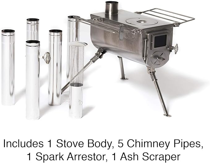 Winnerwell Woodlander Medium Tent Stove | Tiny Portable Wood Burning Stove for Tents, Shelters, and Camping | 800 Cubic Inch Firebox | Precision Stainless Steel Construction | Includes Chimney Pipe