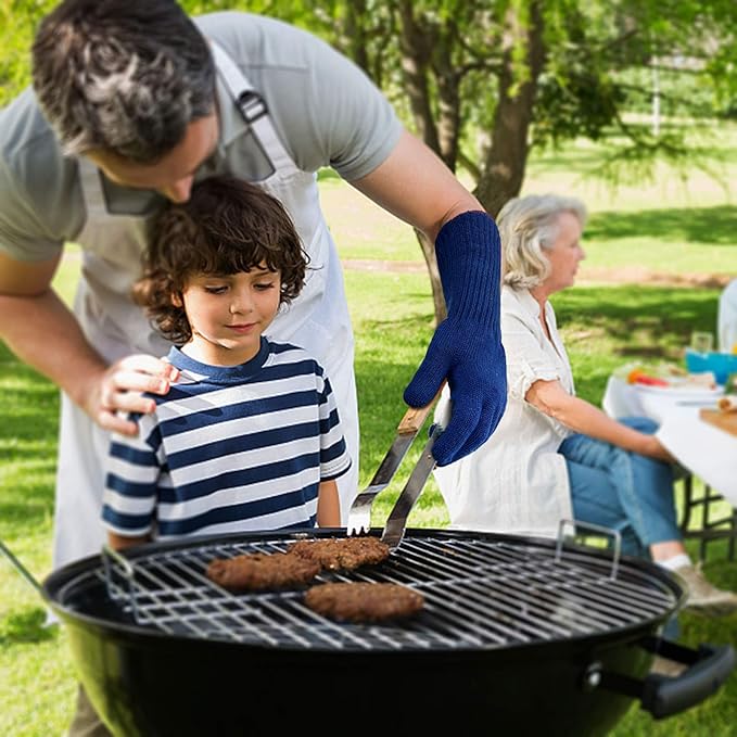 - 【Hands Hot Protection】The BBQ gloves are made of heat resistant aramid fabric and breathable polyester cotton inner liner, protect your hands from heat burning while cooking, grilling. Withstand high heat temperatures up to 932 °F(512°C)