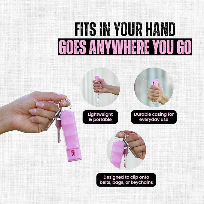 - Feel Secure- Our key chain pepper spray pack is small and lightweight which makes it convenient to carry on your keys when walking home at night or running through the park and is quick to deploy with one day. A discreet compact pepper spray case design that is easy to conceal and practical for your EDC kit.
