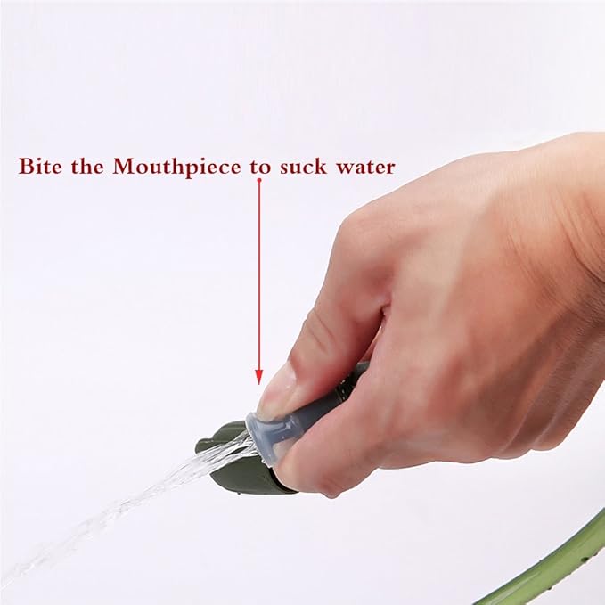 - Super affordable package - Place an order, you can get 2 Baen Sendi water Bladder. Package contains: 1 piece blue hydration bladder and 1 piece ArmyGreen hydration bladder .★★How to drink water: Firstly, turn on the water outlet valve switch. Then bite the mouthpiece and start sucking water at the same time. Remember to bite the mouthpiece to make it slightly deformed and form a water outlet, then start sucking, and thus you can draw water.