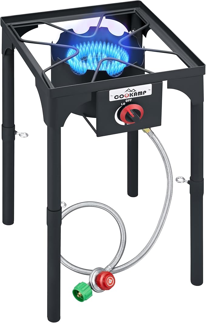High Pressure Single Propane Burner 55,000BTU Outdoor Camping Stove with 0-20 PSI Adjustable Regulator and Steel Braided Hose (55,000BTU)