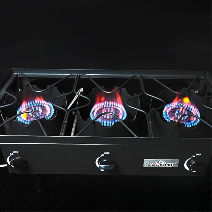 High Pressure Triple Propane Burner Outdoor Propane Camping Stove with 0-20 PSI Adjustable High Pressuer Regulator and Steel Braided Hose 3 Burner Stove Brewing Supply SA3500