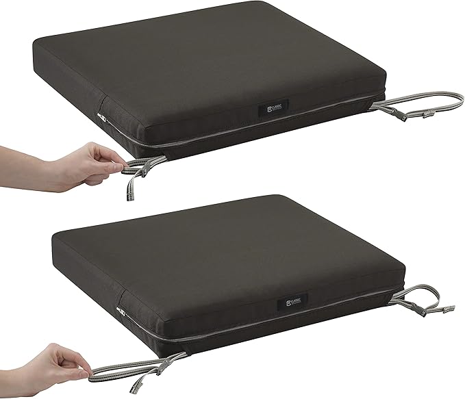 Classic Accessories Ravenna Water-Resistant 21 x 19 x 3 Inch Patio Seat Cushion, Espresso, Chair Seat Cushion