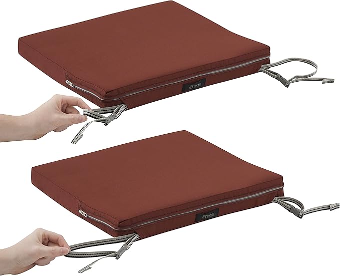 Classic Accessories Ravenna Water-Resistant 17 x 15 x 2 Inch Patio Seat Cushion, Spice, Chair Seat Cushion
