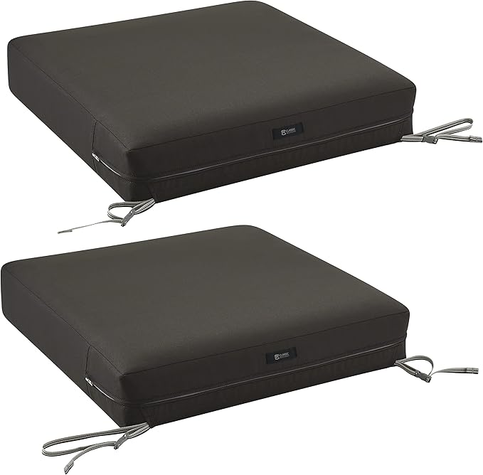 Classic Accessories Ravenna Water-Resistant 23 x 23 x 5 Inch Square Patio Seat Cushion Slip Cover & Foam, Espresso, Lounge Chair Cushion