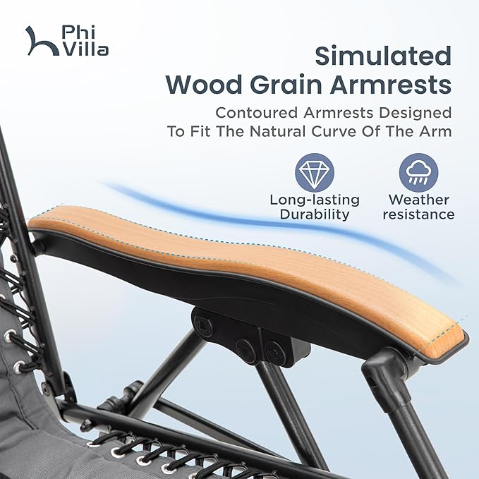 PHI VILLA XXL Oversized Padded Zero Gravity Chair, Foldable Patio Recliner, 30" Wide Seat Anti Gravity Lounger with Cup Holder, Set of 2, Support 400 LBS (Gray)