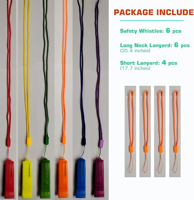 - NON BRITTLE PLASTIC, can't crack or break, bright color-highly visible, never fade and non corrodible, pretty good whistles to carry in case of emergency.