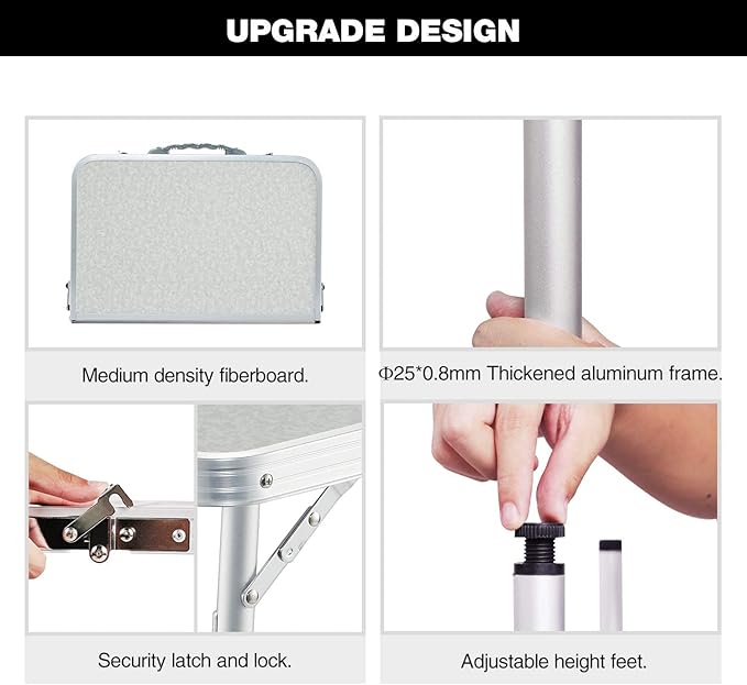 - 【Easy to Setup】 Install the folding camp table easily within several seconds. Quick to fold out and take with the carry handle. Easy to clean the tabletop with a paper or cloth.