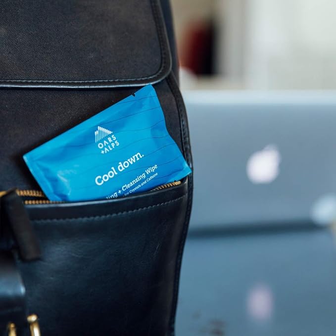 Oars + Alps Cooling Face & Body Wipes, Dual Sided Cleansing Wipes Towelettes for Post Workout, Activities,Commutes, Dermatologist Tested Skin Care with Menthol & Ginseng, Travel Friendly, 14 ct