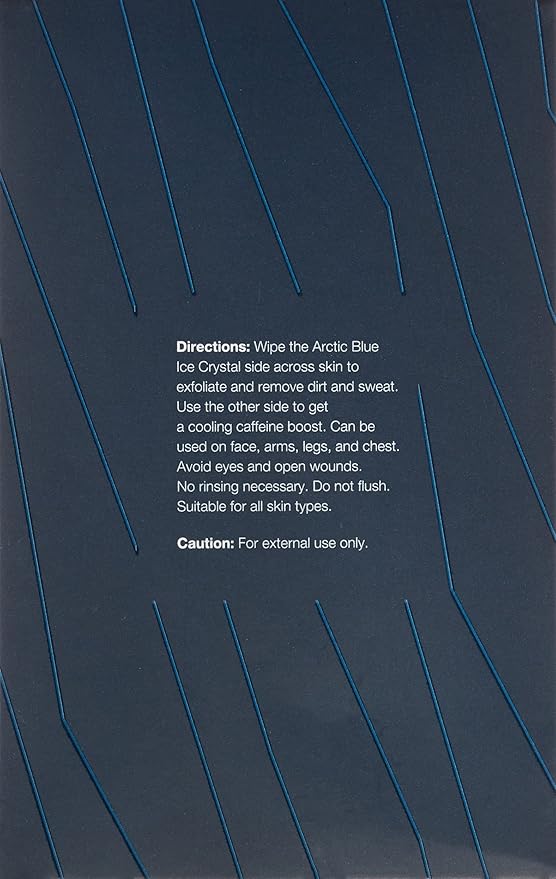 - EXFOLIATE, ENERGIZE, REFRESH: These wipes are double sided to make sure you're removing dirt and sweat from your skin and also cooling you down in the process. Use the Arctic Blue Ice Crystals side to exfoliate your skin and remove dirt and sweat. Use the other side to get a refreshing caffeine boost.