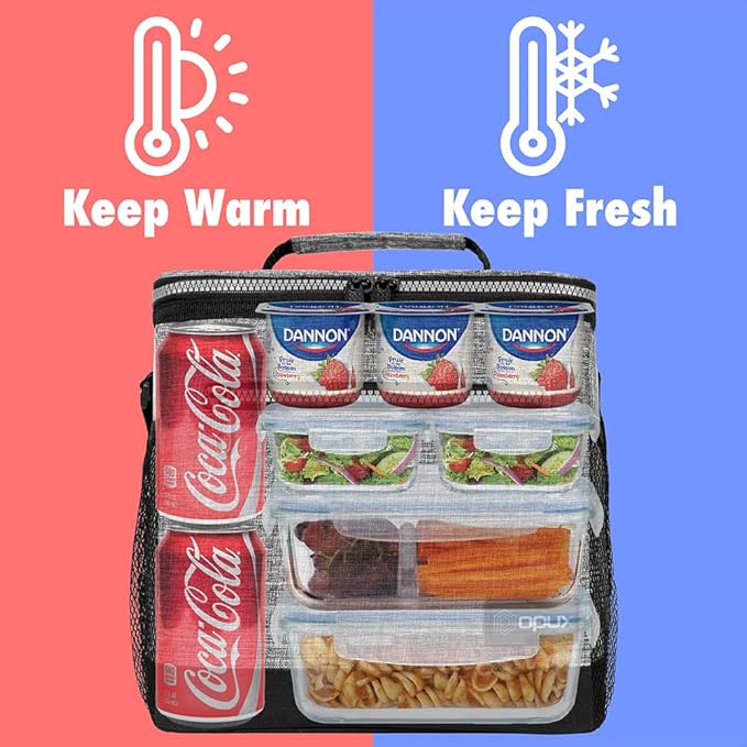 - CONVENIENT TO CARRY: Lunchbox for work is portable and collapsible for easy storage. The medium lunch bag has a top handle and adjustable long strap that allows you to carry it multiple ways.