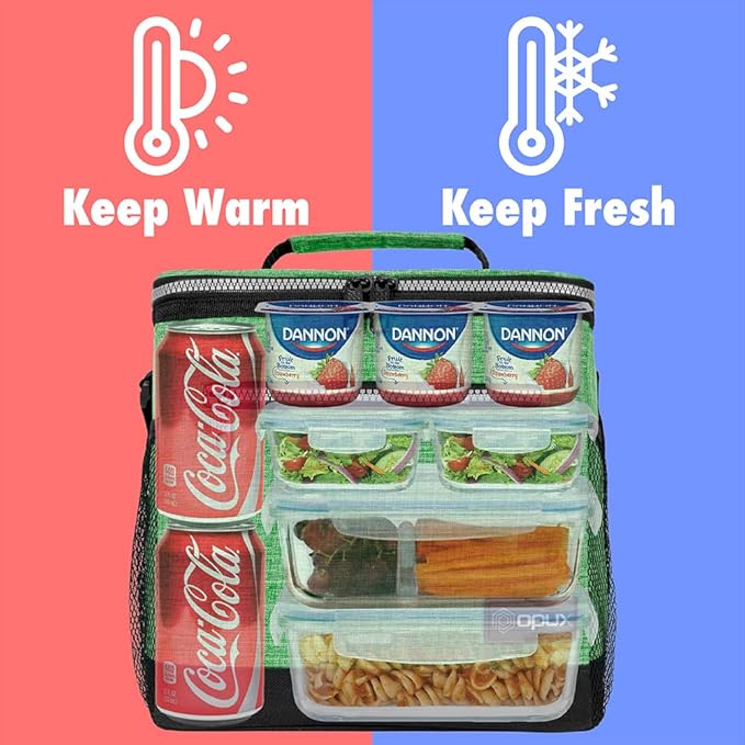 opux Extra Large Insulated Lunch Box Men Women, Lunch Bag for Work, Leakproof Soft Cooler Tote Adult, Lunch Pail, Picnic Beach Collapsible Food Bag with Shoulder Strap, Heather Green