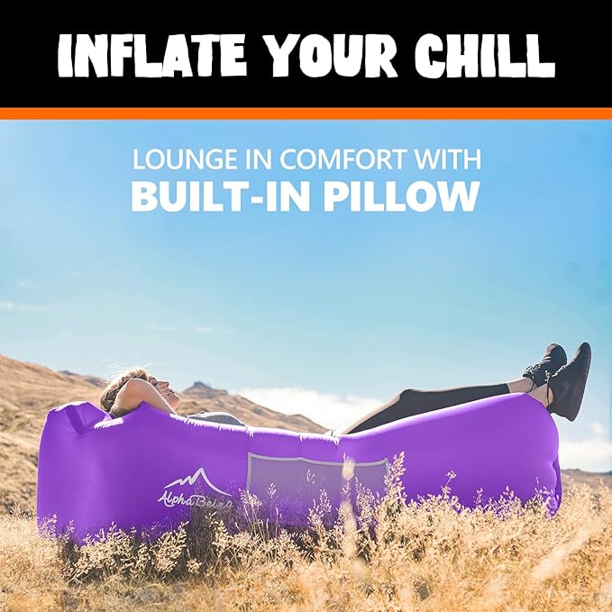 - EASY INFLATION DESIGN -- No pump required for AlphaBeing air lounger. Just a few scoops of air and this inflatable lounger is ready to hangout in. This is a must-have for any BBQ, Pool Party, Beach, Hike, Concert, or Camping Trip. Folding to 12"x 8"x 4"and fitting in its own carrying bag with shoulder strap, this air sofa is ready to be taken anywhere with you.
