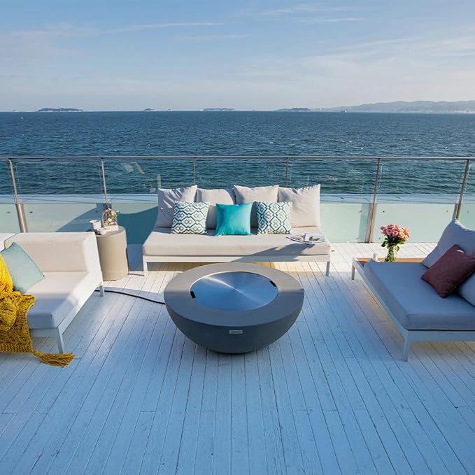 Elementi Lunar Fire Bowl Outdoor Fire Pit Table 42 Inches Round Firepit Concrete Patio Heater Electronic Ignition Backyard Fireplace Cover Lava Rock Included Liquid Propane