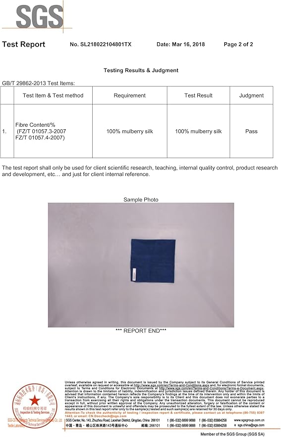 - Material : 100% Natural Mulberry Silk (identification by SGS) - 8 momme AA-grade silk